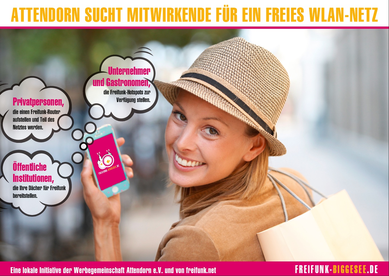 Es gibt Aufkleber zur Kennzeichnung der Router. Aufkleber für den Einzelhandel und die Gastronomen, um die Schaufenster zu schmücken und einen Flyer, um Interessenten, wie in den nächsten Tagen zum Weihnachtsmarkt, mit ersten Informationen zu begeistern.