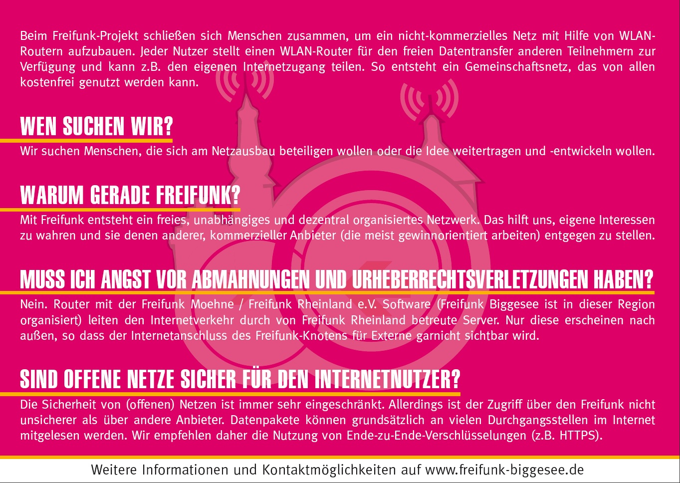 Thomas Klose ist von der FREIFUNK-IDEE überzeugt: “Wäre es nicht ein tolle Sache, wenn ein solches, freies WLAN „rund um den Biggesee“ nicht nur auf wenige Punkte in Wenden beschränkt, sondern einfach überall verfügbar wäre? In Einzelhandelsgeschäften und auf der Straße? FREIFUNK ist eine einfache, sichere und kostengünstige Möglichkeit, genau dies zu bewerkstelligen!”